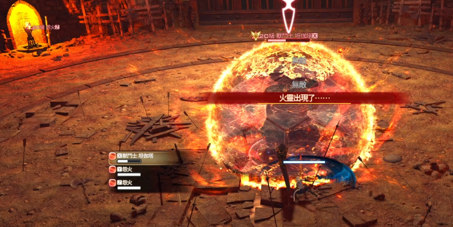 火靈的守護:王會無敵並在兩邊產生小怪,打小怪解除無敵。