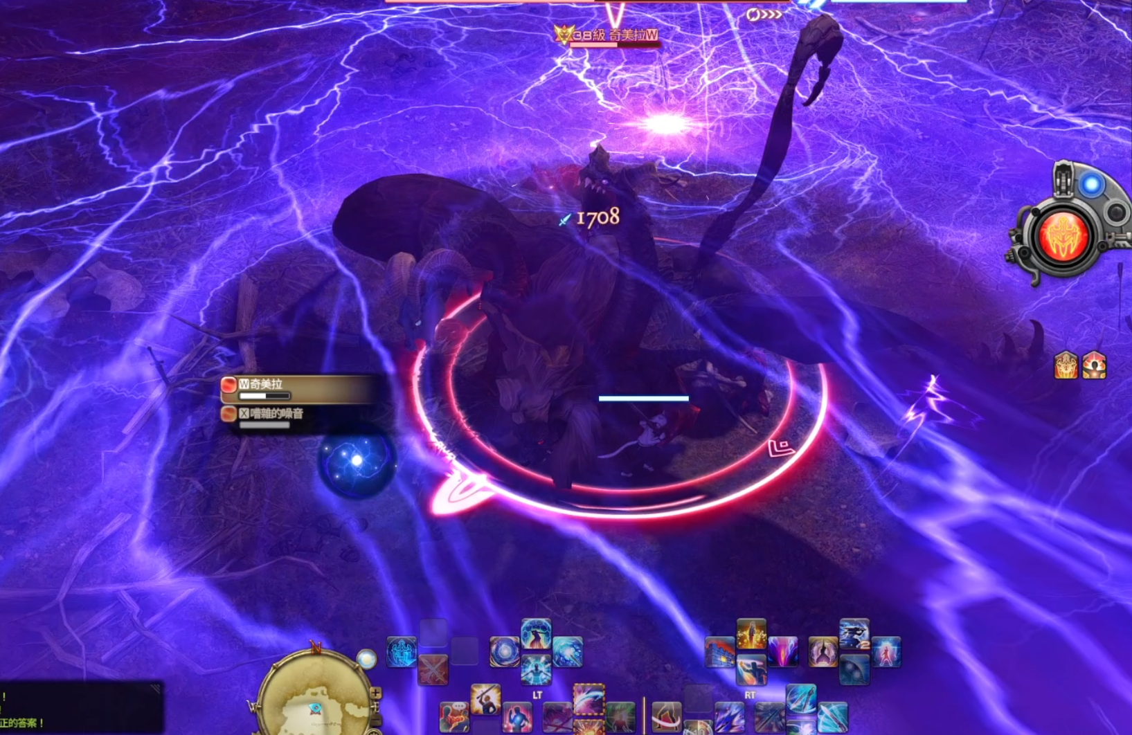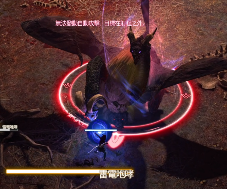 雷電咆哮:不可視月環AOE,靠近躲避。