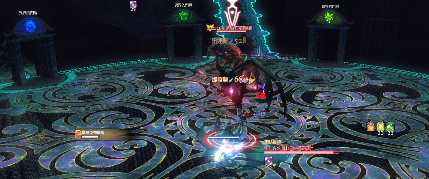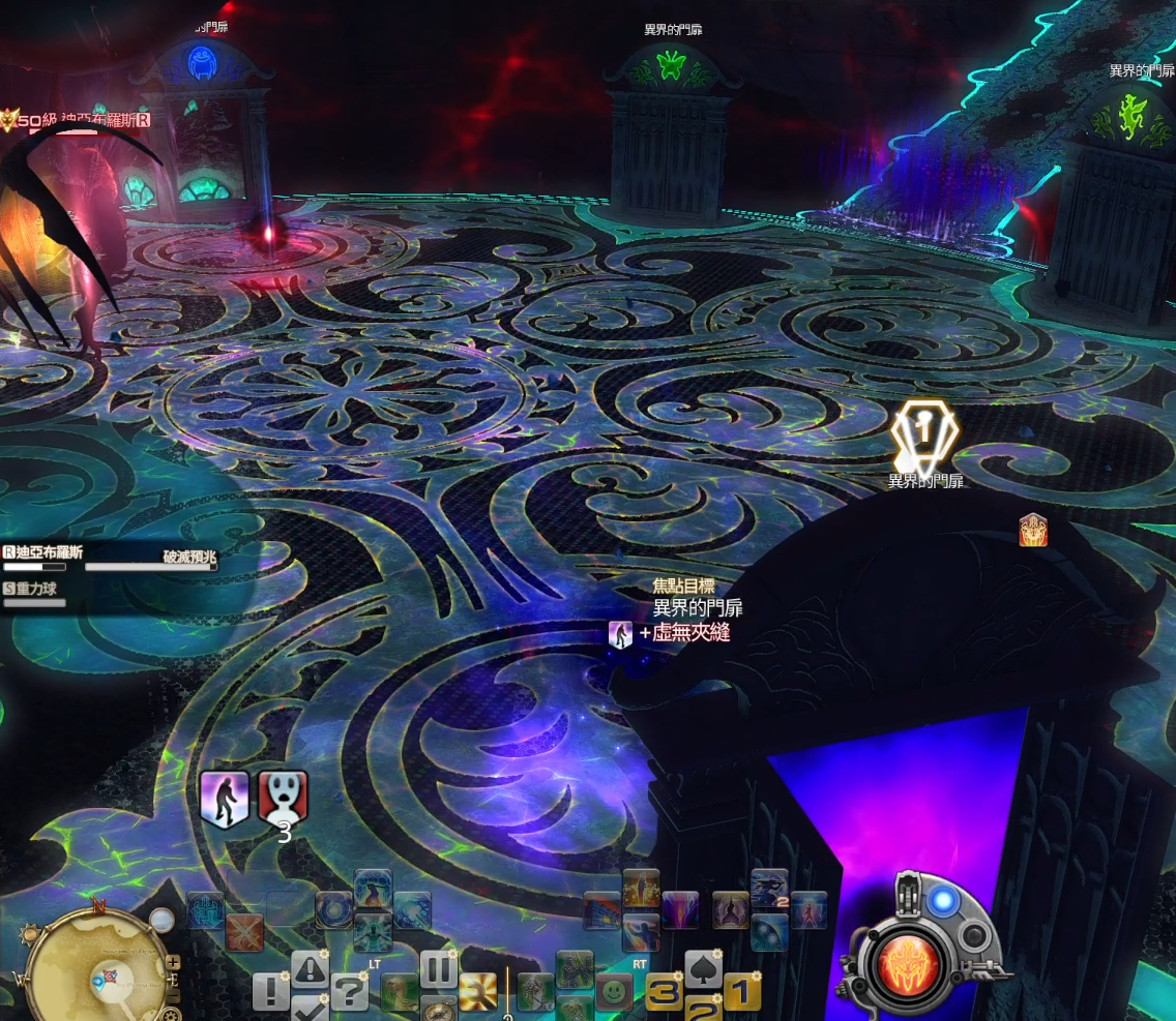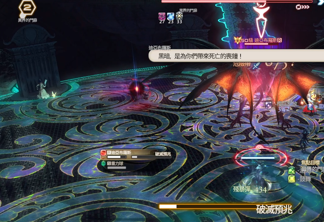 破滅預兆:全範圍AOE,讀條到一半時開始同顏色的門迴避。